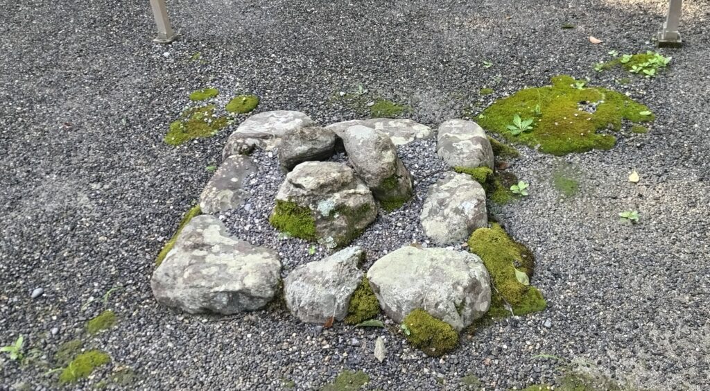 三ツ石は、3個の石を重ねた石積みです。この前で、御装束神宝や奉仕員を祓い清める式年遷宮の川原大祓が行われます。